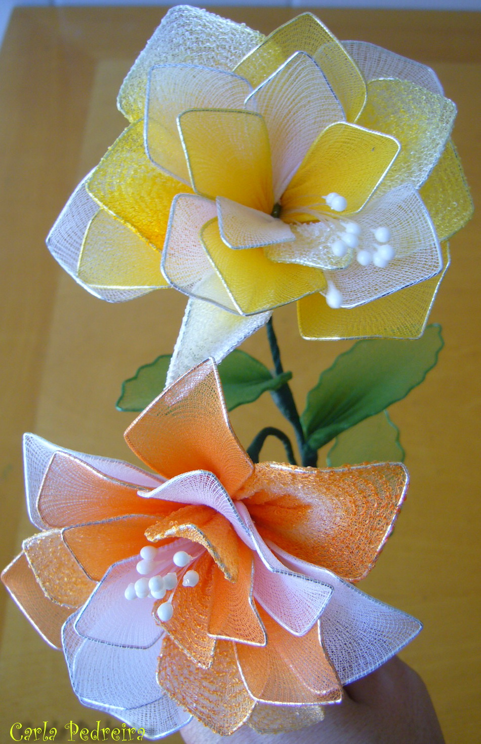 Trabalhei muito tempo com arranjos de flores em meias sedas. Mas hoje não mais. No entanto, pretendo voltar...